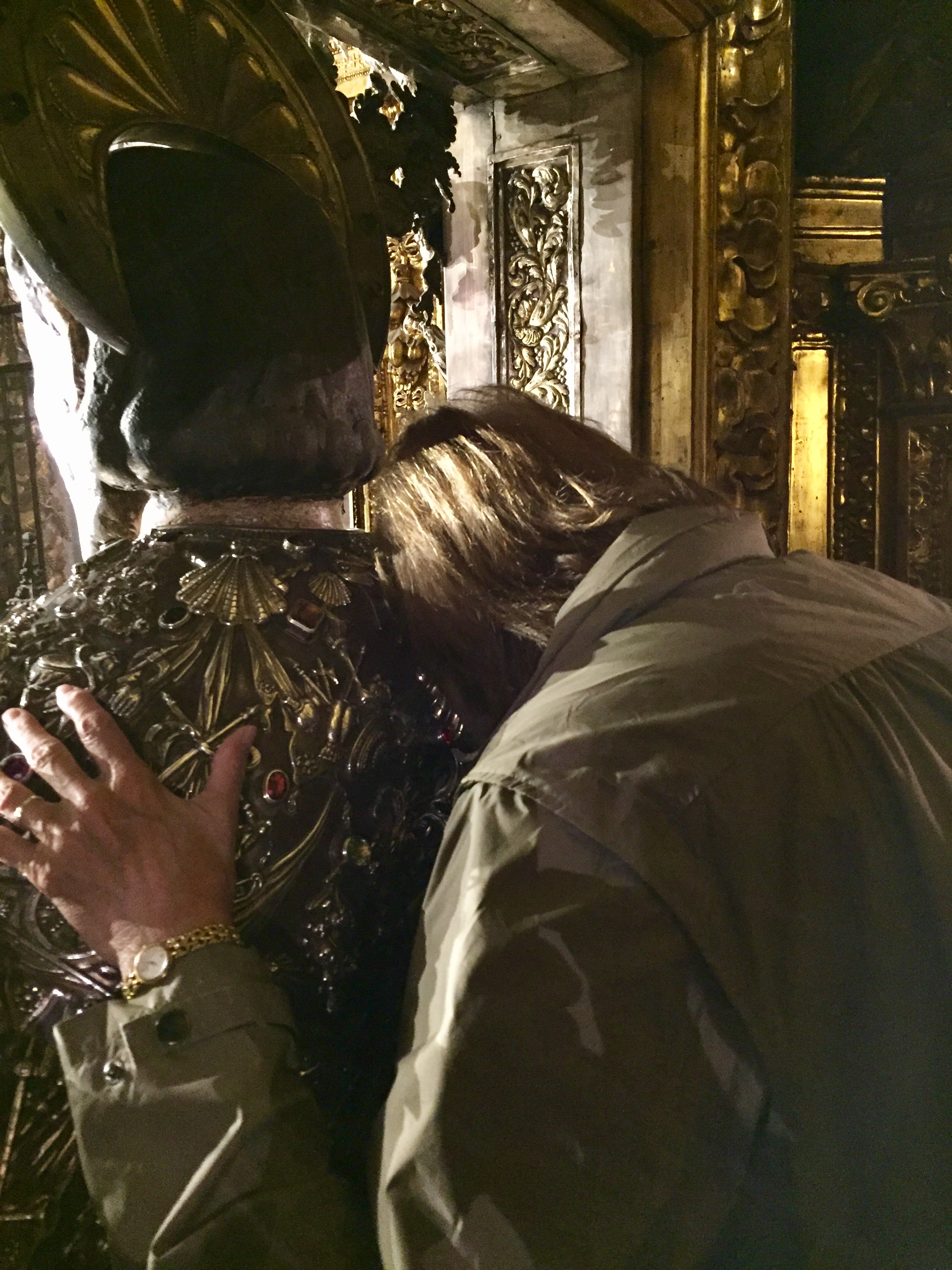 Following tradition we hugged the statue and touched our brow to his head. Then descended to the relics in the crypt and knelt before the remains. Practically having the place to ourselves we were not rushed.
